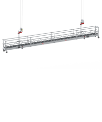 With the MHB 60 Double Deck suspended platform you can create an additional work platform. Handy if you need to work on two levels simultaneously. The second level is accessible via a hoop ladder and a platform deck with trapdoor. Change level easily and quickly. Working efficiently and effectively has never been easier than with the MHB 60 Double Deck suspended platform. With just two hoists, you can raise the entire platform to great heights. The modular system means that all of the individual components are easy to assemble and dismantle.The MHB 60 Double Deck suspended platform is available with end- and walk-through stirrups. End-stirrups are assembled to the ends of the suspended platforms. Walk-through stirrups are used if the length of the entire suspended platform exceeds the length between the cables/hoists. Both offer a maximum platform length of 12 metres.